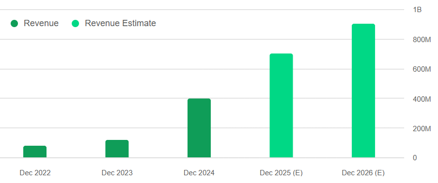 As mentioned, Astera Labs revenue grew 45% in 2023 (right before its IPO), but then grew 242% in 2024, over 144% (to $159.4 million) in Q1 2025 (year over year), and analysts are projecting revenue over $1.9 billion by 2029. This high growth is being fueled by the AI megatrend.